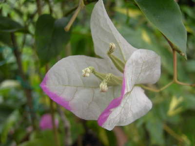 Meine lieblings Bllühpflanze!!Bei mir im Wintergarten blüht sie fast das ganze Jahr in allen möglichen Farben , von kupfer bis grell Rot und pink auch gelb und weiß etc.Aber eine Rarität , wie man auf dem Photo sieht, ist die Bouganvillea die sowohl rein weiße, rein rosa und gemischt rosaweiße Blüten trägt!!!!