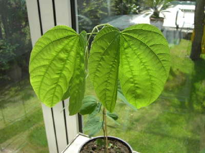 Den Namen hat er durch seine wunderschönen Blüten bekommen(ab dem dritten Jahr)Wir mögen ihn aber auch ,seiner Blätter wegen.Sie sind zweilappig und falten sich abends zusammen man könnte sagen erklappt sie zu!!